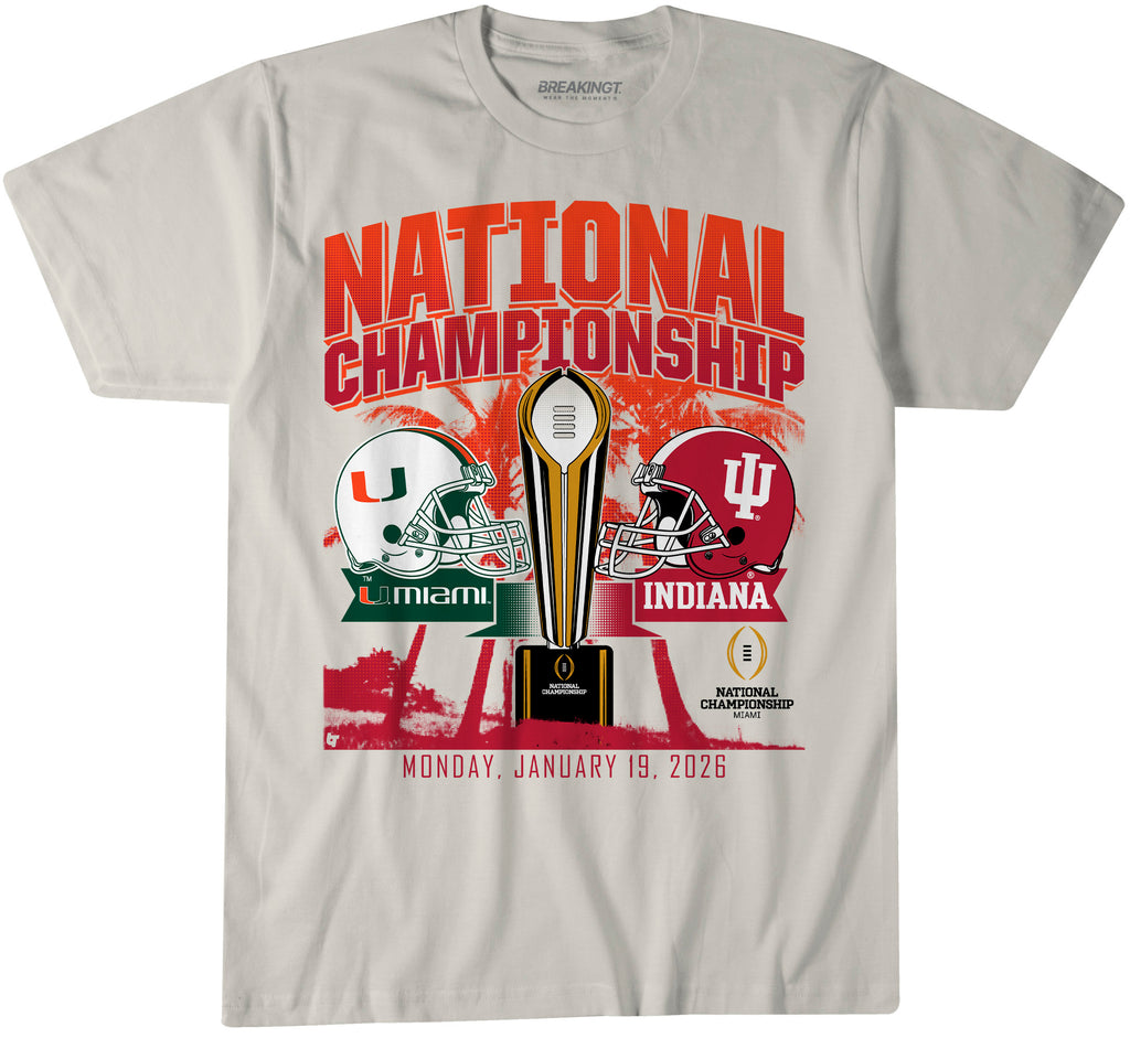 Miami Hurricanes vs Indiana Hoosiers 2026 National Championship Match Up T-Shirt - Natural