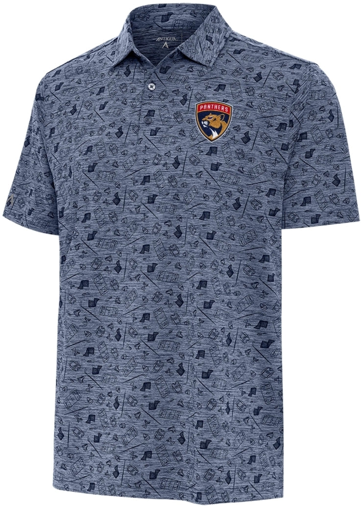 Florida Panthers Antigua Primary Logo Rink Polo - Navy/Heathered Blue