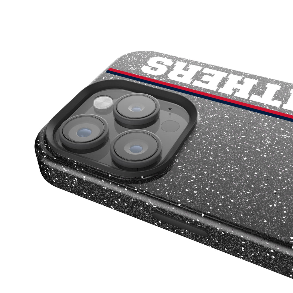 This black, sparkly case with a microfiber interior is officially-licensed and MagSafe compatible. It provides fun and protection to your cell phone. Designed and decorated by Keyscaper in Tualatin, Oregon, USA., this case is exciting and durable. It has precise speaker and port cutouts, easy press buttons, and a raised lip around the screen and camera lens to provide extra protection against accidental bumps and scratches.