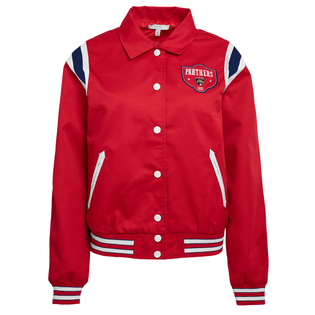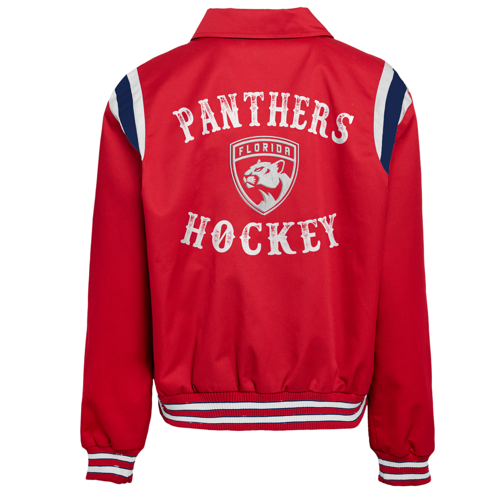 - Rib-knit collar, cuffs and hem with team colored stripes for a snug fit and durable stretch