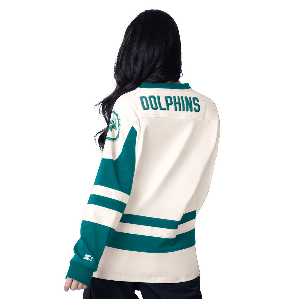 Miami Dolphins Women's Starter Historic Laced Pullover - Cream/Aqua