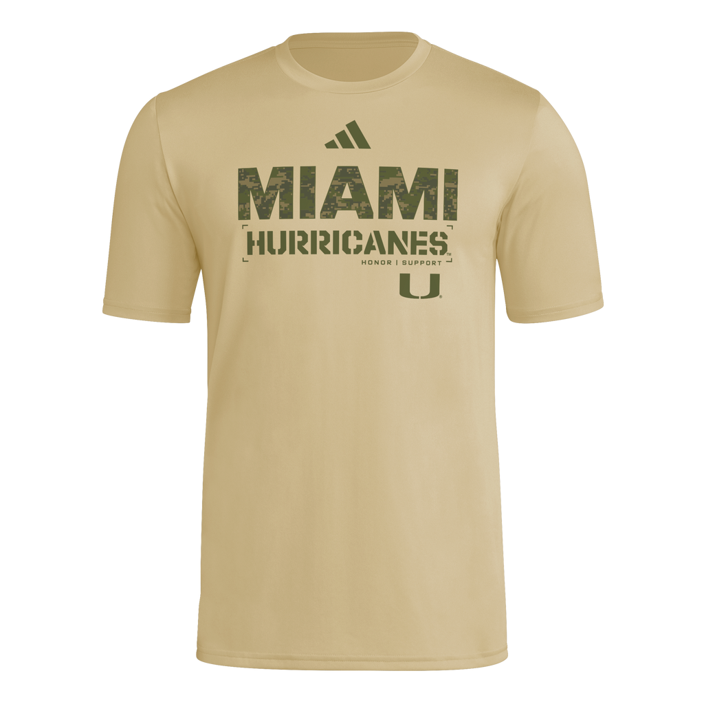 Miami Hurricanes adidas 2025 Military Appreciation Pregame T-Shirt - Beige