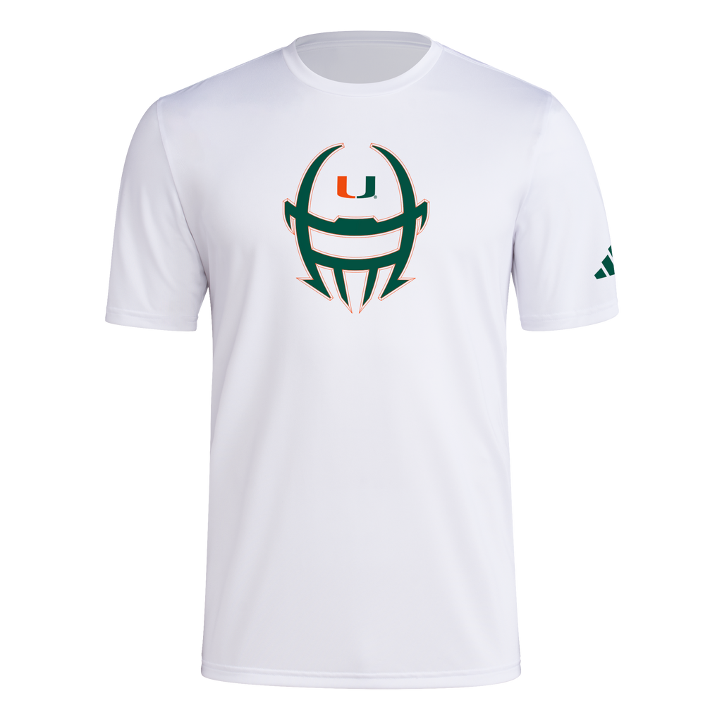 Miami Hurricanes adidas 2025 Football Helmet Pregame T-Shirt - White