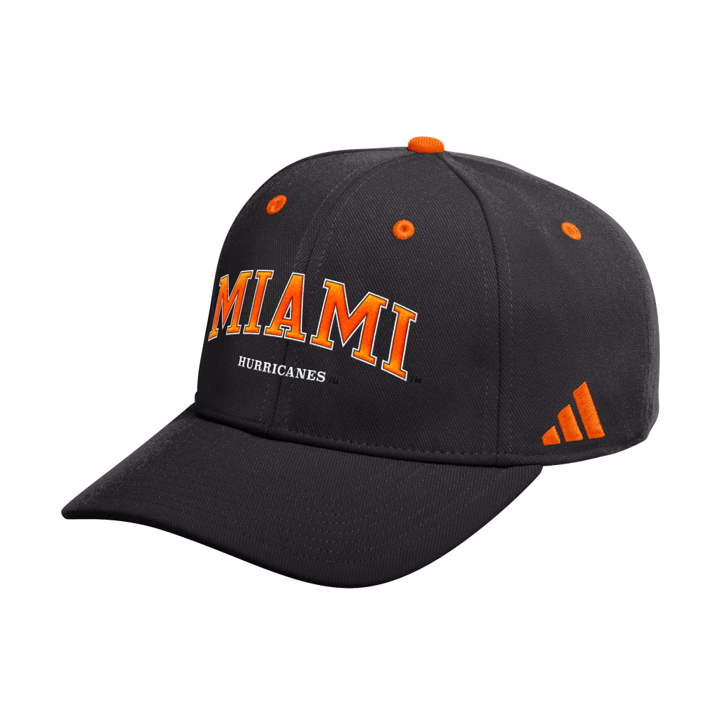 Miami Hurricanes adidas 2025 Stretch Fit Hat - Black