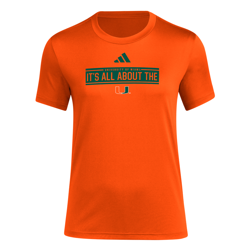 Miami Hurricanes adidas Women's Locker Slogan Pregame T-Shirt - Orange