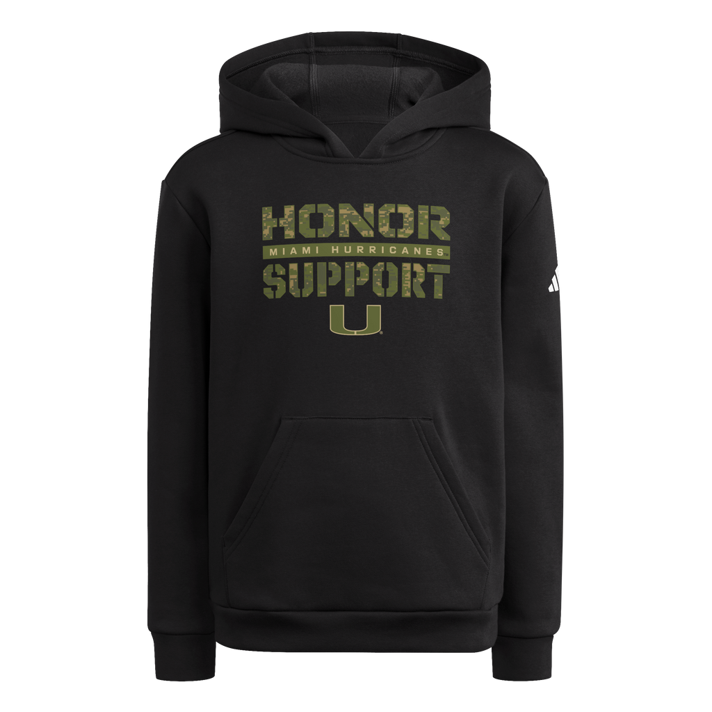 Miami Hurricanes adidas 2025 Youth Military Appreciation Hoodie - Black