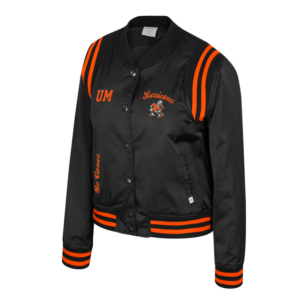 Miami Hurricanes Women's Colosseum Wonderful Life Sateen Bomber Jacket - Black