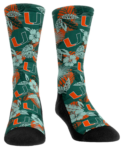 Miami Hurricanes Rock'em Floral Socks - Green